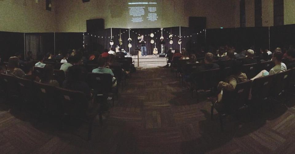 SLO Cru’s first weekly meeting! Too big for any room on campus, so they moved to a local church!