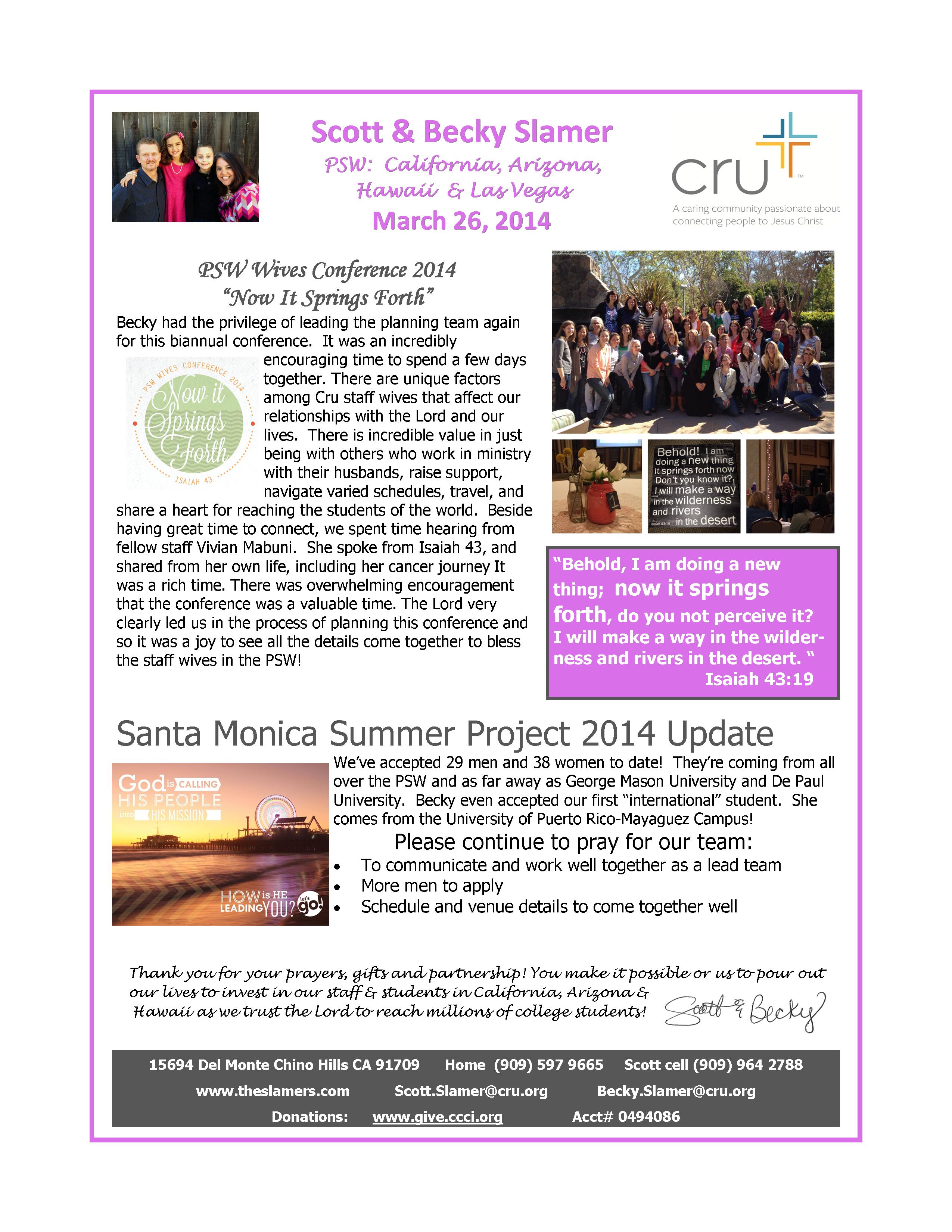 - Pray for us as we coordinate the placement of all 220 staff & interns for their summer2015 assignments. For wisdom & grace in the process.